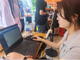 在南望山校区迎新现场,党员先锋岗的红色帐篷成为一道亮丽的风景线。服务点布局合理、功能齐全,配备有电脑、矿泉水和迎新资料等必需品,为新生和家长提供及时便捷的服务。“党员先锋岗”的标识鲜明醒目,精心设计的欢迎展板烘托出热情而专业的迎新氛围,充分展现了伟的国际1946bv的独特风采。服务点设置的每一处细节,都凝聚着学院党委对迎新工作的周密部署,传递出对2025级新同学的诚挚欢迎与深切关怀。
